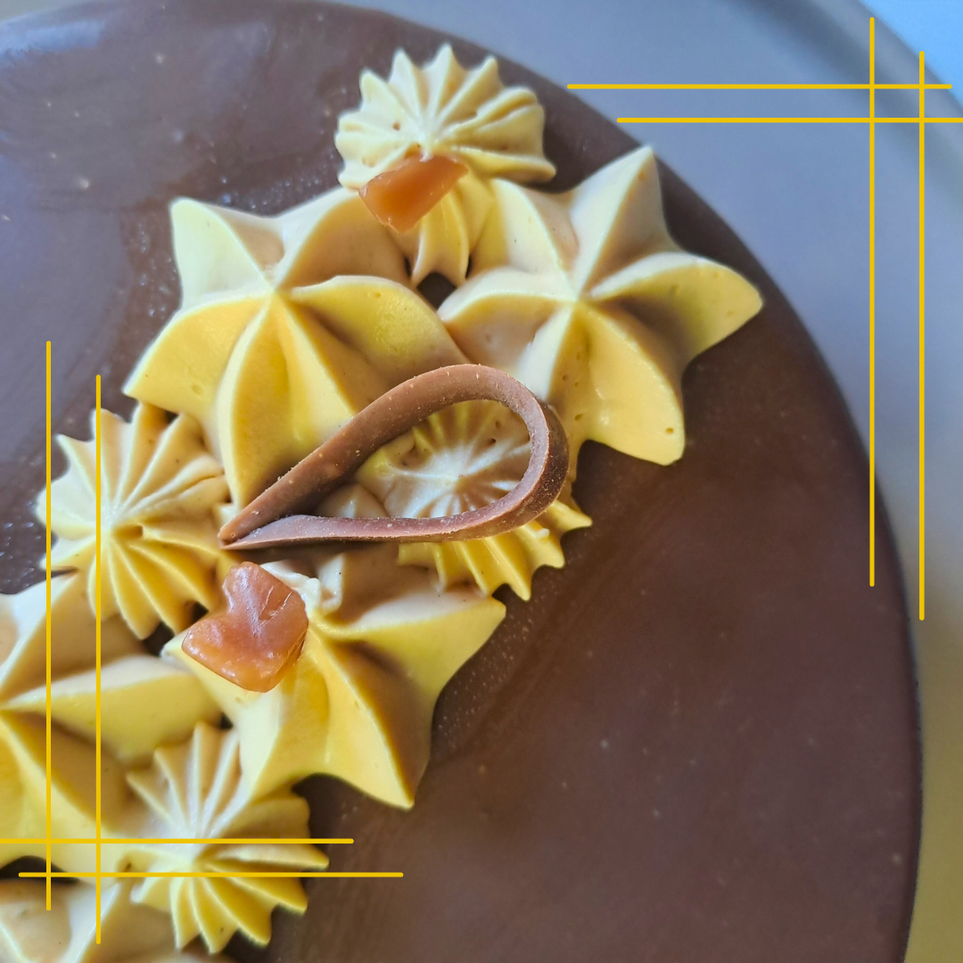 Puis, comme une révélation, le cœur de cette création se dévoile : un insert généreux de caramel, coulant et doré, qui dégage des notes profondes de vanille et de beurre salé. Chaque cuillerée est une danse entre la douceur envoûtante du caramel et l’intensité ronde du chocolat au lait.