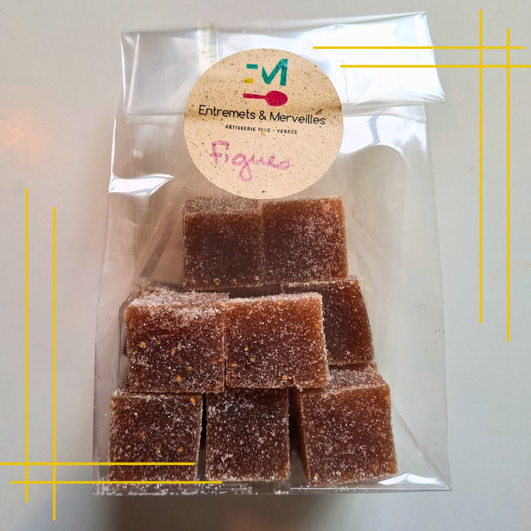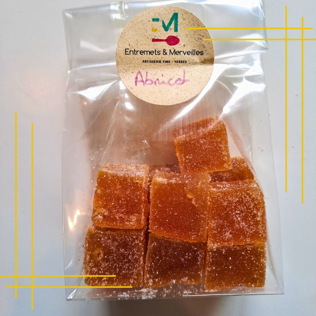 Pâtes de fruits aux purées de fruits, sucre. Sans arôme, sans colorant. Sachet de 150g.